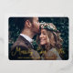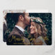 Send joyful holiday wishes as a new Mr. & Mrs! Celebrate your first married Christmas and share two of your favourite wedding pictures with a stylish custom photo "Merrily Ever After" gold foil holiday card. All text on this template is simple to personalise to include any wording, such as Merry and Married, Merrily Married, Happy Holidays, Seasons Greetings, New Year Cheers etc. Modify or delete message on back to use as wedding thank you and Christmas card combined. (IMAGE PLACEMENT TIP: An easy way to centre a picture exactly how you want is to crop it before uploading to the Zazzle website.) Front side of card is printed with real metallic gold foil lettering. The modern minimalist design features trendy handwritten style script typography overlay and 2 photos of your choice. Family and friends will love displaying this elegant customised card. Cheers to the newlyweds!