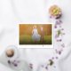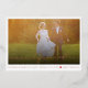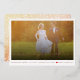 A Holiday Wedding Announcement Card Featuring a Single Photo Within a Simple White Frame and a White Merrily Ever After Handwriting Script Design.