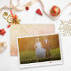 This modern and minimalist real foil pressed holiday/christmas wedding announcement card features the word 'Merrily Ever After' in a stylish handwriting script calligraphy overlaying a photo within a white frame.