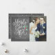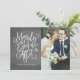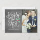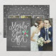 Spread love while showing off your wedding photos this holiday season with this chic and modern Just Married Holiday Photo card. Perfect for the newly married couple to use as a holiday card, wedding announcement or thank you card around the holidays season. This card highlights your wedding photo by pairing it with festive and playful script typography that says "Merrily Ever After" and accented by our hand-painted watercolor holly. The back of the card features a snowy pattern with 3 additional photos.