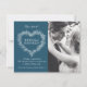 Mistletoe botanical inked line art heart wreath drawing blue and white merrily married Christmas card with your own photo to one side. Personalise with your own message invite to a party or a post-wedding event, names, and your photo. Ideal to send some love as mistletoe is a symbol of love and has associations with vitality and good health. Original line drawing and design by Sarah Trett for www.mylittleedenweddings.com only on Zazzle.