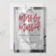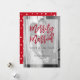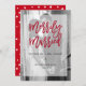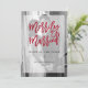 This modern and stylish Christmas card features your own personal wedding photo covering the background completely. A sheer white overlay features trendy red script typography that says "Merrily Married", plus your new names and the year with a little holly branch added too.