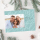 A modern holiday card design in coastal colors featuring a horizontal or landscape-oriented photo with "Merry & Bright" overlaid in oversized, tone on tone lettering. Personalize with your custom holiday greeting, family name, and the year. A chic and modern minimalist choice for your Christmas 2021 cards.