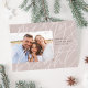 A modern holiday card design in warm neutral colors featuring a horizontal or landscape-oriented photo with "Merry & Bright" overlaid in oversized, tone on tone lettering. Personalize with your custom holiday greeting, family name, and the year. A chic and modern minimalist choice for your Christmas 2021 cards.