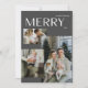 Merry 3 Photo Collage Modern Grey Christmas Holiday Card