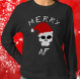 Merry AF Funny Christmas Santa Skull Dark Humour T-Shirt features a skull with a Santa Hat and text that proclaims, "Merry AF." This funny T-Shirt with dark Christmas Humour is completely customisable. Personalise this Christmas T-shirt by switching out or adding your own images and text.