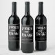 Festive Merry And Bright, holiday wine bottle labels. Design features, whimsical white holiday typography quote on black background. Two template text lines for your message and names.