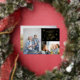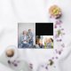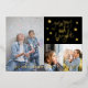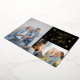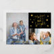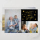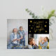 Personalised Merry and bright gold foil card. Design features elegant black background with 3 portrait photos in the front and one landscape photo in the back. Front of card features family name and year.