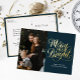 Merry and Bright Blue Gold Calligraphy Photo Modern Real Foil Holiday Postcard. Send Holiday Greetings to your loved ones with this festive and Modern Holiday Card. All the texts are pre-arranged for you to personalise easily and quickly with your own details. Happy Holidays!