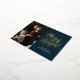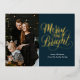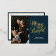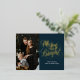Merry and Bright Blue Gold Calligraphy Photo Foil Holiday Postcard