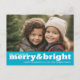 Merry and Bright Bold Modern Photo - blue Holiday Postcard