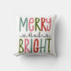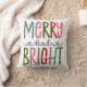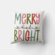 Fun and whimsical colourful Christmas pillow with Merry and Bright sentiment.