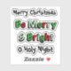 Merry and Bright, Merry Christmas and O Holy Night Typograph festive holiday stickers in bright pretty red and green colours.