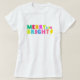 Celebrate the bright holiday season with this colourful t-shirt with fun minimalist typography in bright maximalist colours! Merry and Bright text with a holiday light bulb. A very fun way to celebrate the season in bright style. Bold lettering in green, red, orange, pink, blue, and hot pink.