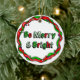Red and green Merry and Bright Snowflakes Christmas Ornament.