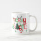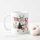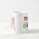 Merry and Bright Christmas in red and green lettering with retro ornaments, Christmas tree, and antlers.