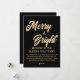 Merry and Bright Christmas Gold Beige Script Black Holiday Card