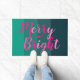 Merry and Bright Christmas Green Pink Doormat