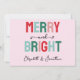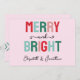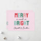 Merry and Bright! Festive holiday card with shades of pink and green.