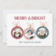 Send warm holiday wishes with our Merry and Bright Christmas photo card, featuring Christmas ornaments in elegant blush pink, mauve, and green tones. This modern and cheerful design is the perfect way to share your favorite memories and spread joy to friends and loved ones this season. A stylish, heartfelt touch to your holiday greetings.