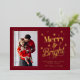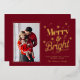 Send the brightest holiday wishes with this wonderfully vibrant photo card featuring a bold, split design. The rich deep red background perfectly highlights the large, shimmering gold foil message: "Merry & Bright," surrounded by scattered foil stars and festive greetings. Your cherished family photo is elegantly framed on the left, set against the same deep red for a modern, striking, and luxuriously joyful announcement.