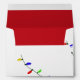 Fun holiday invitation / Christmas card envelope, with a colourful strand of Christmas tree lights, wrapping from the front to the back of the envelope. The inside of the envelope is done in Christmas red. Personalise the red return address, on the back flap, of the envelope, for your holiday cards. Matching products are available.