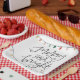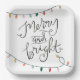 Modern, simple and cheerful Merry and bright lettering with bright and colourful strings of Christmas lights. This paper plate design will add warmth to any holiday dinner table.
