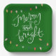Merry and Bright Christmas Lights Green Paper Plate