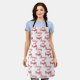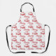 A festive Christmas apron featuring a repeating “merry and bright” red hand-lettered typography pattern on a clean white background. Perfect for holiday cooking, baking, parties, and Christmas gifts.