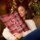 This pillow features the words "Merry and Bright" in a beautiful white scripted font with ornamental snowflake accents. The Christmas plaid pattern features a festive red and black buffalo plaid with a delicate green striping. A beautiful addition to your Christmas decor.
