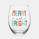 Merry and Bright Christmas Stemless Wine Glass