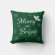 Christmas 'Merry and Bright'with a forest green background throw pillow.