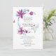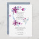 Wedding invitation featuring silver and purple christmas themed florals.