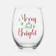 Merry And Bright Classic Christmas Holiday Stemless Wine Glass