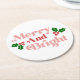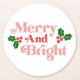 Merry and Bright - Classic Holiday Typography Round Paper Coaster