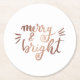 Merry and bright - copper round paper coaster