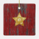 “May your days be merry & bright.” A close-up photo of a happy and cute, rustic log snowman, wrapped in a red and white striped scarf against lighted trees helps you usher in Christmas and New Year. On the back, a gold faux glitter star overlays dark red barn wood. Feel the warmth and joy of the holiday season whenever you hang up this cute and fun personalised name and year keepsake ornament. Matching cards, envelopes, stickers, giftwrap, pillows, housewares, jewellery, and other products are also available in my “Christmas Days Be Merry & Bright” store collection. A great gift for someone special, or even yourself!