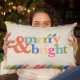 "Merry and Bright" Decorative Christmas Holiday Lumbar Cushion