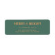 Modern stylish Merry and Bright bold typography with gold copper snowflake green Christmas chic return address label.