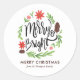 "Merry and Bright" Festive Hand Painted Wreath Classic Round Sticker
