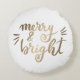 Merry and bright - gold round cushion