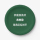 Merry and Bright, Green Christmas Art, Holiday Paper Plate