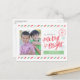 This stylish and festive holiday card features hand-lettering and a postage stamp theme.