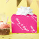 Merry and Bright hot neon pink script Christmas Wrapping Paper. Elegant bubble gum pink gift wrap rolls personalised with name and Holiday greeting. Chic pattern design for friends and family.