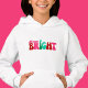 Kids will be revved up and ready to celebrate Christmas with this fun, colourful sweater. Featuring the text "Merry and bright" in ultra bright tones of pink, red, green and aqua in a retro bubble style of typography.