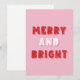 Merry and Bright, Merry Christmas, Christmas, Pink Holiday Card