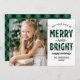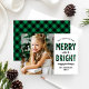 Merry and Bright Modern Green Buffalo Plaid Photo Holiday Card