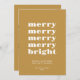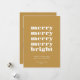Stylishly elegant modern flat holiday greeting card featuring minimalist typography and a clean simple composition in gold. Merry and Bright theme of repeating “merry” texts leading to “bright”. Prominent family photo (placeholder to be replaced), personalizable holiday greetings and signature. Refined minimal holiday greetings for those that appreciate utmost simplicity and elegance. Need help personalising or customisations? Contact us. We’re happy to help. Wishing you the happiest holidays!
