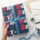 Capture the magic of the holiday season with our beautiful blue Christmas gift wrap. The bold typography in red, cream, and green spells out "Merry & Bright," perfectly setting the festive tone., ideal for any home ,show joy and wrap a christmas gift with this merry and bright Christmas gift wrapping,