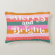 Make a bold statement with your holiday home decor this year with our bright modern striped merry and bright Christmas holiday throw pillows. Bring fun, cheerful warmth to your winter decor. Large retro typography in white with stripes in shades of pink, coral, teal, and gold creates a stunning modern holiday colour palette. Welcome all the guests to your home with cosy vibes, this piece will be the star of your living room! Easily add your own custom message or family name.
